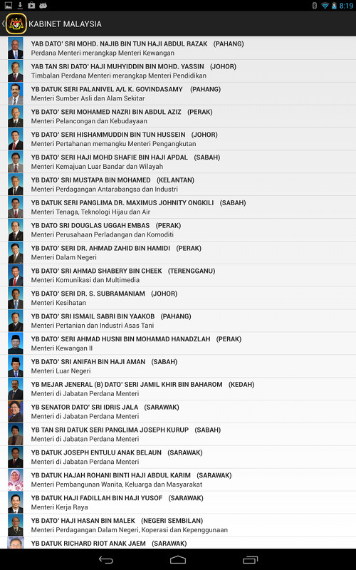 Maklumat Lengkap Kabinet Malaysia, Menteri Besar/Ketua menteri, Exco Negeri dan Wakil Rakyat (Parlimen & DUN).